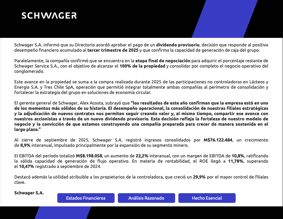 Schwager es presente y futuro minero. Desde nuestros orígenes, hace más de 160 años, hemos sido parte fundamental de la evolución de la minería en Chile, contribuyendo con eficiencia e innovación al desarrollo de una industria minera productiva y sustentable.